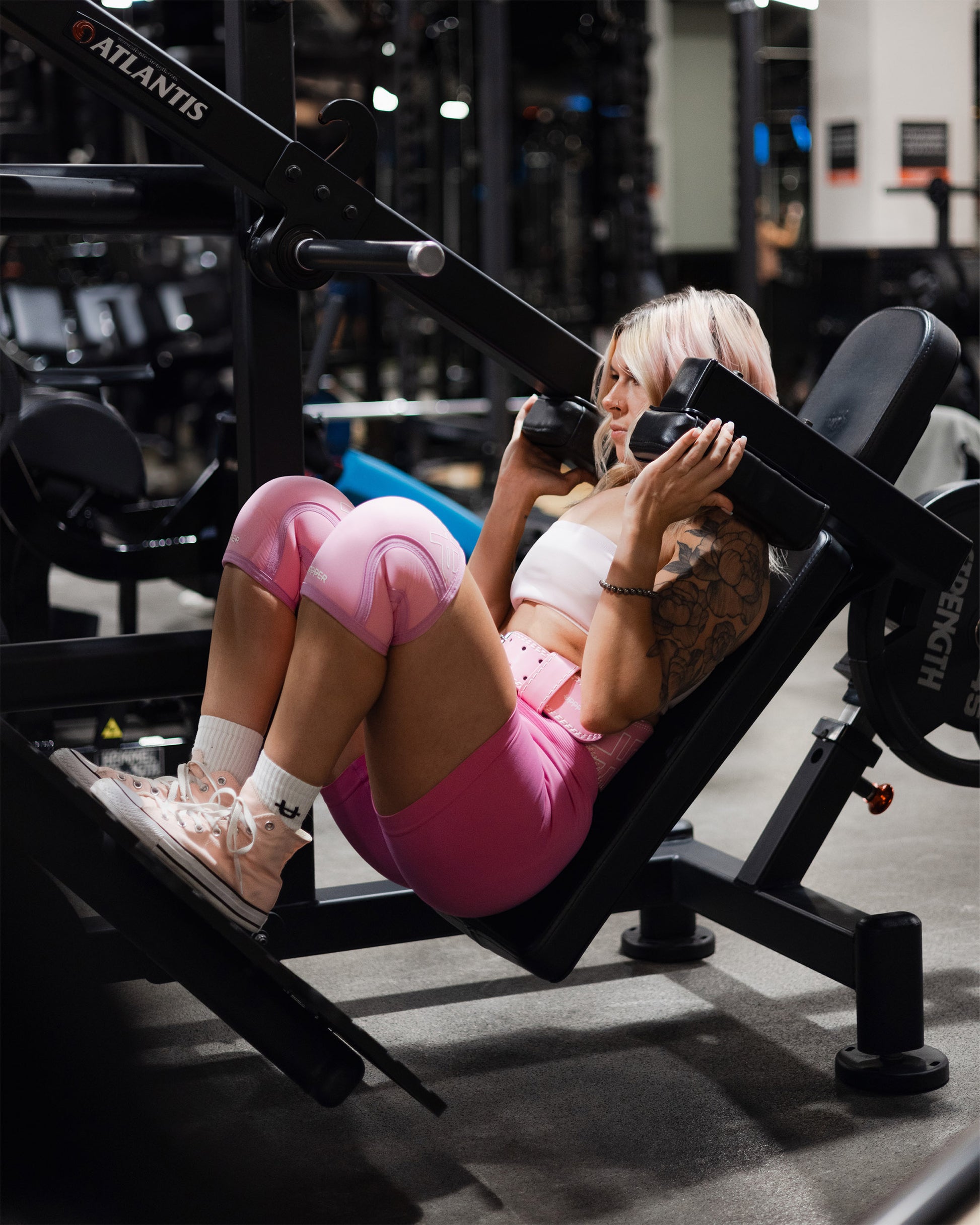 The benefit of wearing knee sleeves for weightlifting is the compression they provide to the knee joint which keeps the knees warm during heavy squats or other exercises. They help stabilize the knee joint and reduce discomfort as well.