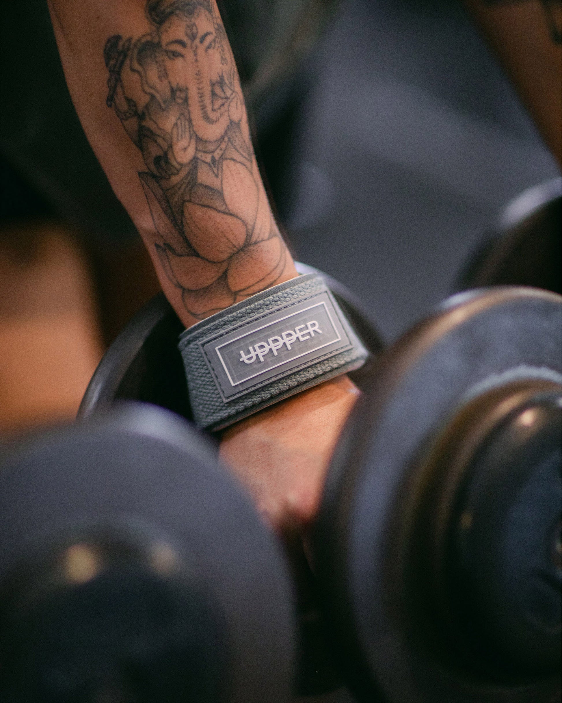 How you wear weightlifting straps will depend on what type you get! For UPPPER Lifting Straps (lasso style) follow these directions: Place the loose end through the loop on the other end of the strap to create a bigger loop, then put your hand through said loop. Secure the loop around your wrist by tightening the strap, making sure it’s resting comfortably against the lower part of the back of your hand. Place the strap in a way that the loose end that’s sticking out is on the palm of your hand, pointing between your index and thumb. If it’s pointing the opposite way, redo the initial loop the other way around. Wrap the loose end of the strap around the barbell or dumbbell by tightly looping it underneath and around the bar. Twist the barbell or dumbbell towards you to finish tightening it until you feel it completely secured in your hand.
