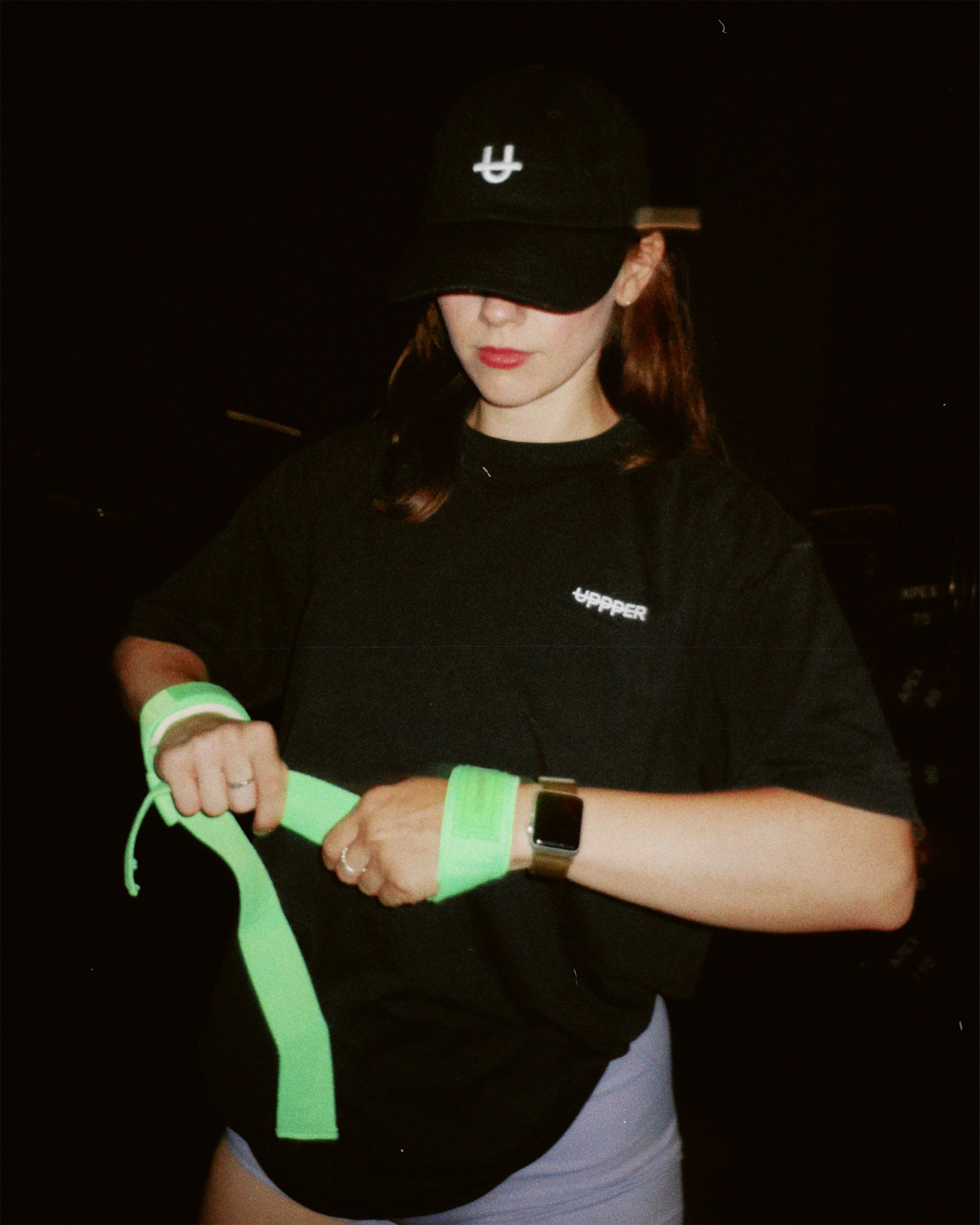 How you wear weightlifting straps will depend on what type you get! For UPPPER Lifting Straps (lasso style) follow these directions: Place the loose end through the loop on the other end of the strap to create a bigger loop, then put your hand through said loop. Secure the loop around your wrist by tightening the strap, making sure it’s resting comfortably against the lower part of the back of your hand. Place the strap in a way that the loose end that’s sticking out is on the palm of your hand, pointing between your index and thumb. If it’s pointing the opposite way, redo the initial loop the other way around. Wrap the loose end of the strap around the barbell or dumbbell by tightly looping it underneath and around the bar. Twist the barbell or dumbbell towards you to finish tightening it until you feel it completely secured in your hand.