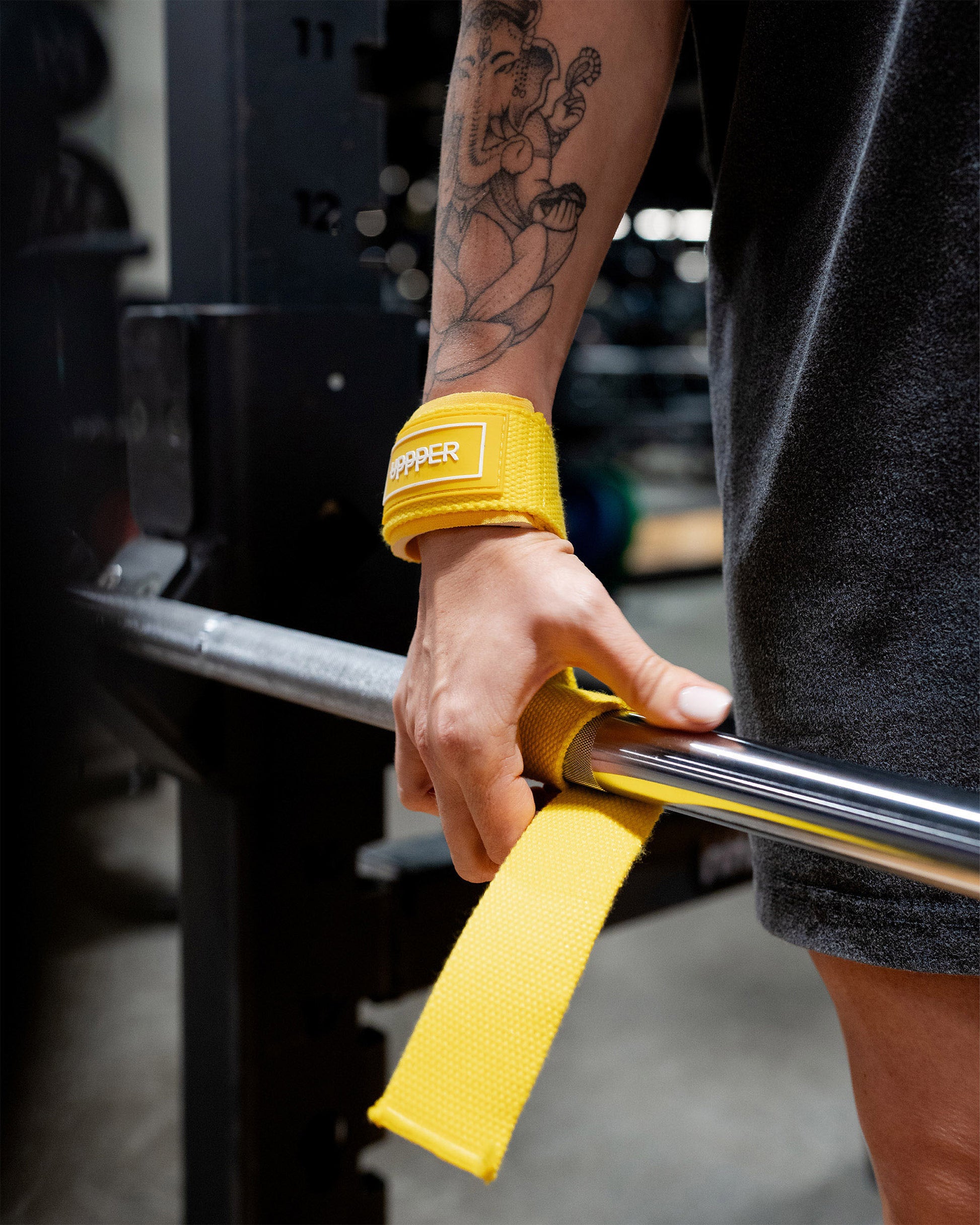 How you wear weightlifting straps will depend on what type you get! For UPPPER Lifting Straps (lasso style) follow these directions: Place the loose end through the loop on the other end of the strap to create a bigger loop, then put your hand through said loop. Secure the loop around your wrist by tightening the strap, making sure it’s resting comfortably against the lower part of the back of your hand. Place the strap in a way that the loose end that’s sticking out is on the palm of your hand, pointing between your index and thumb. If it’s pointing the opposite way, redo the initial loop the other way around. Wrap the loose end of the strap around the barbell or dumbbell by tightly looping it underneath and around the bar. Twist the barbell or dumbbell towards you to finish tightening it until you feel it completely secured in your hand.